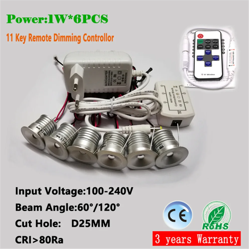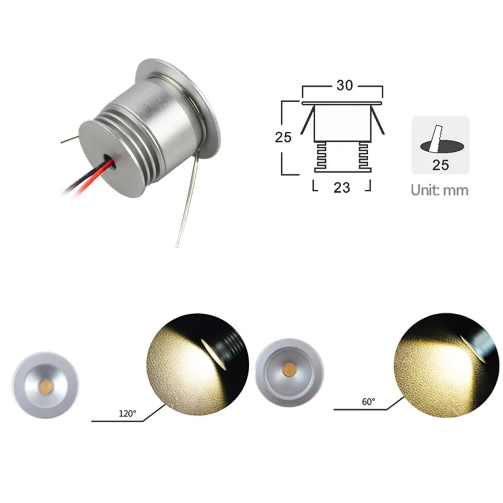 1W תקרת LED Downlight, 25mm מגזרת 60D/120D שקוע אור, AC100-240V קלט עמעום זרקור, מקורה תאורה 6 יח'\סט